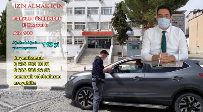 Tam kapanma sürecinde kendi ihtiyaçlarını karşılayamayacak durumdaki ileri yaş gruplarındaki veya ağır hastalığı olan vatandaşlarımız 112 yi veya Kaymakamlığımızın 0 236 788 1001 ve 0 236 788 33 52 numaralı telefonlarını arayarak temel ihtiyaçlarını (eczanelerden ilaç ihtiyacı dahil) bildirebilir. Bildirilen ihtiyaçlar en kısa zamanda Vefa Sosyal Destek Gruplarımızca karşılanacaktır. Lütfen sokağa çıkma yasaklarına ve zaruri ihtiyaçlarımızı görürken de maske ve mesafe kurallarına uymaya ve kalabalık oluşturmamaya çok dikkat edelim. Elbirliği ile salgını en kısa sürede atlatmayı temenni eder, tüm hemşerilerimize sağlıklı günler dilerim” dedi.